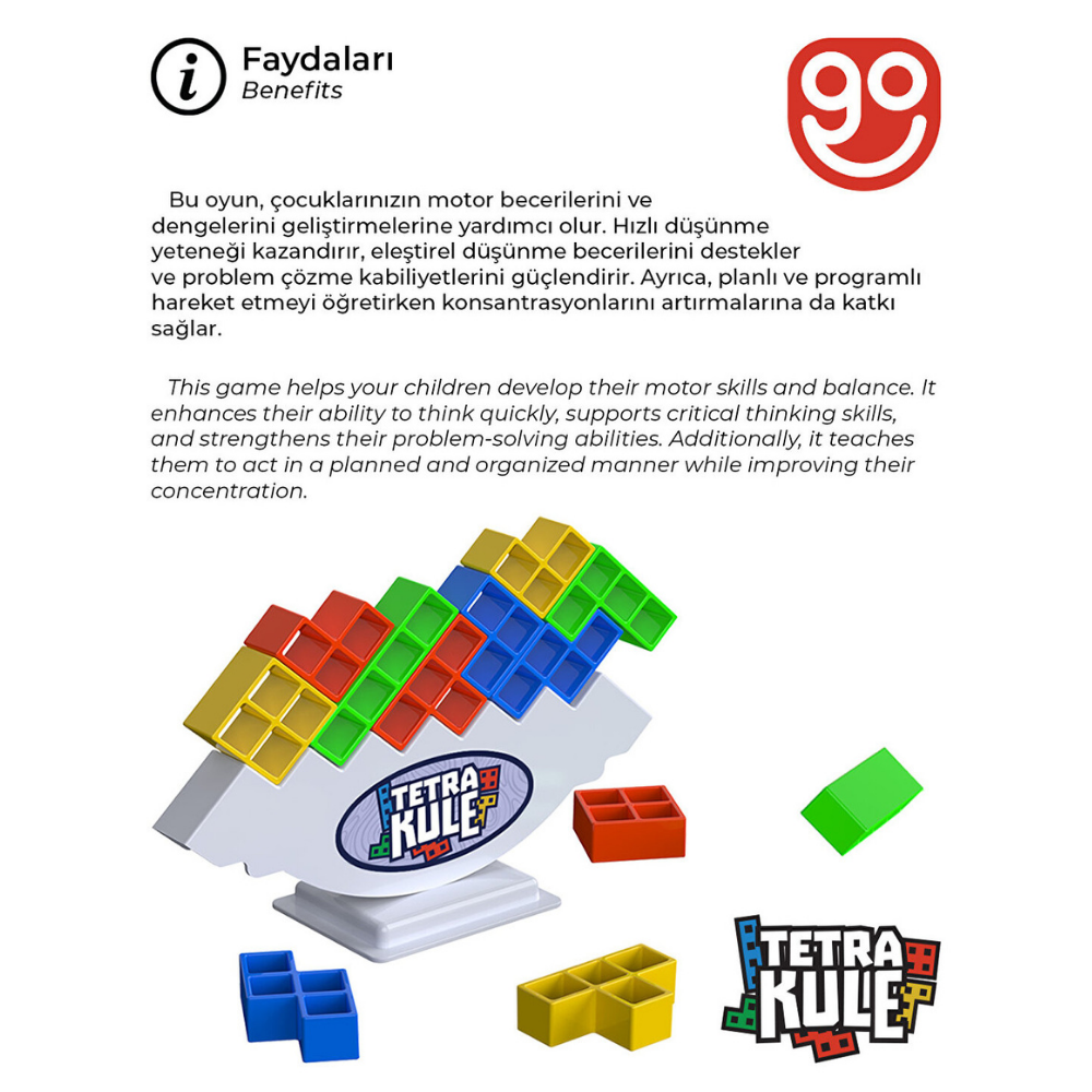 Eğitici ve Eğlenceli → Tetris bloklarıyla kule kurarken dikkat, sabır ve strateji becerileri gelişir.